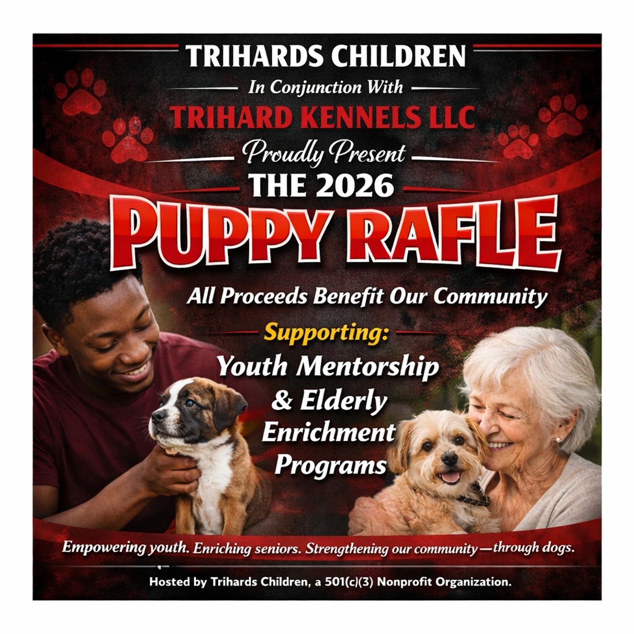 Trihards Children, in conjunction with Trihard Kennels LLC, is proud to present our 2026 Puppy Raffle — a community-driven fundraiser designed to make a real local impact.
